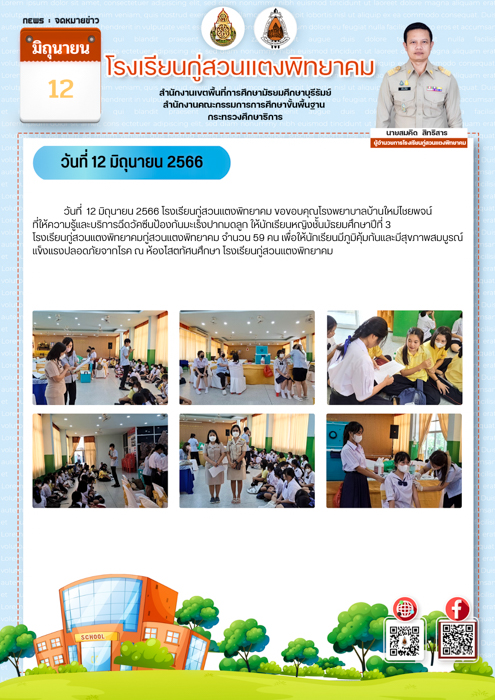 ขอขอบคุณโรงพยาบาลบ้านใหม่ไชยพจน์ที่ให้ความรู้และบริการฉีดวัคซีนป้องกันมะเร็งปากมดลูก ให้นักเรียนชั้นมัธยมศึกษาปีที่ 3